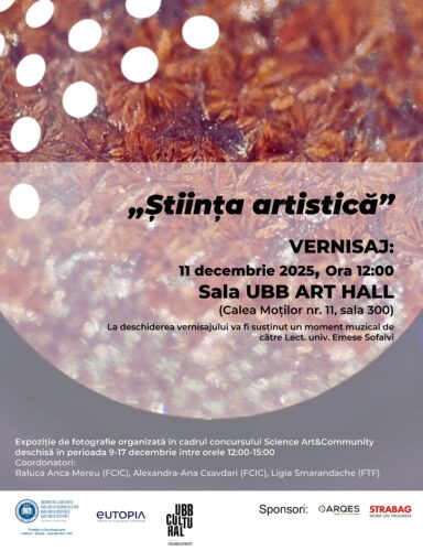 Comunitatea de învățare Science, Art and Community, din cadrul alianței EUTOPIA organizează o expoziție de fotografie care reunește lucrările din cadrul concursului interuniversitar “Artistic Science”.